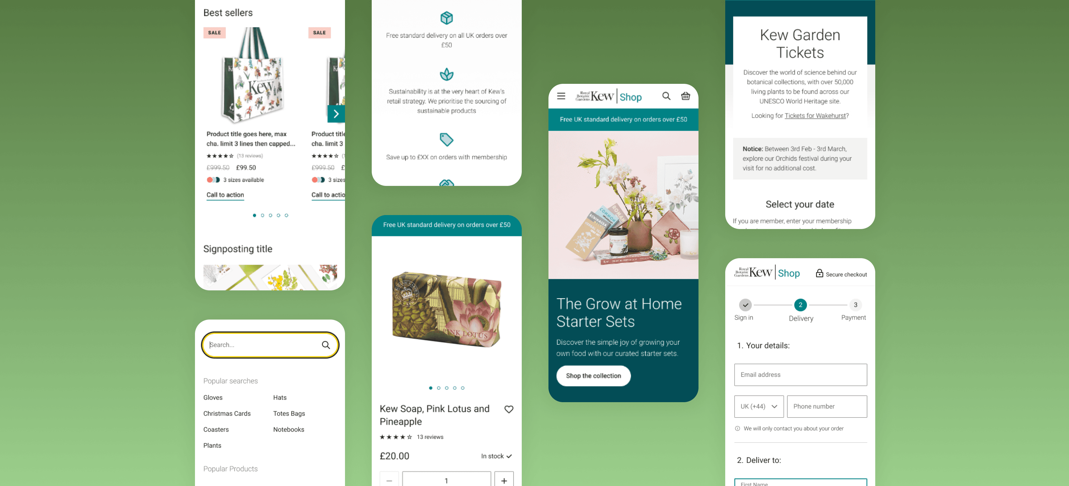 Royal Botanic Gardens, Kew operated three separate digital storefronts: retail shop, ticketing, and event bookings. Each had different checkout flows and inconsistent branding. This fragmentation created friction for users and operational complexity for Kew's team. As UI Lead, I worked with a combined team of designers from Williams Commerce and Kew to design the "Single Basket" system. We unified all three experiences into one cohesive Adobe Commerce platform. The project involved creating a scalable design system with accessible components. I established design tokens in Figma and ensured WCAG AA compliance across all touchpoints. I translated complex multi-channel requirements into a mobile-first interface. The design balanced Kew's botanical brand identity with modern ecommerce patterns. Our design team worked as a single unit alongside broader project delivery teams to align with Kew's long-term digital goals.